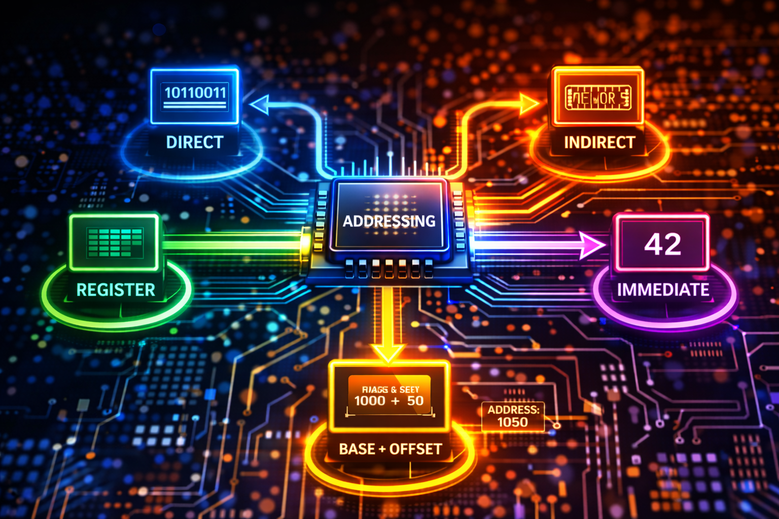 개요주소 지정 방식(Addressing Mode)은 CPU가 명령어를 실행할 때 필요한 데이터(피연산자)의 위치를 어떻게 참조하는지를 정의하는 방법이다. 이는 명령어 집합 구조(ISA)의 핵심 요소로, 프로그램의 효율성과 실행 속도에 직접적인 영향을 미친다. 다양한 주소 지정 방식은 유연한 메모리 접근과 코드 최적화를 가능하게 한다.1. 개념 및 정의주소 지정 방식은 명령어가 피연산자의 실제 값 또는 메모리 주소를 계산하는 방법을 의미한다. CPU는 명령어에 포함된 정보와 레지스터, 메모리 등을 활용하여 유효 주소(Effective Address)를 계산한다.2. 특징항목설명영향다양한 방식 존재여러 접근 방법 제공유연성 증가유효 주소 계산EA 계산 필요처리 비용 발생성능 영향접근 방식에 따라 속도 차이실..