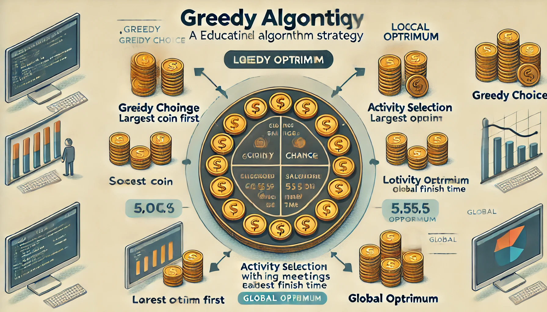 그리디(Greedy) 알고리즘은 문제 해결 과정에서 매 순간 가장 좋아 보이는 선택(최적의 선택)을 하는 전략이다. 각 단계의 선택이 이후의 선택에 영향을 주지 않는 문제, 즉 **탐욕적 선택 속성(Greedy Choice Property)**과 **최적 부분 구조(Optimal Substructure)**를 만족하는 문제에 효과적이다. 빠르고 구현이 간단하며, 다양한 최적화 문제에서 널리 활용된다.