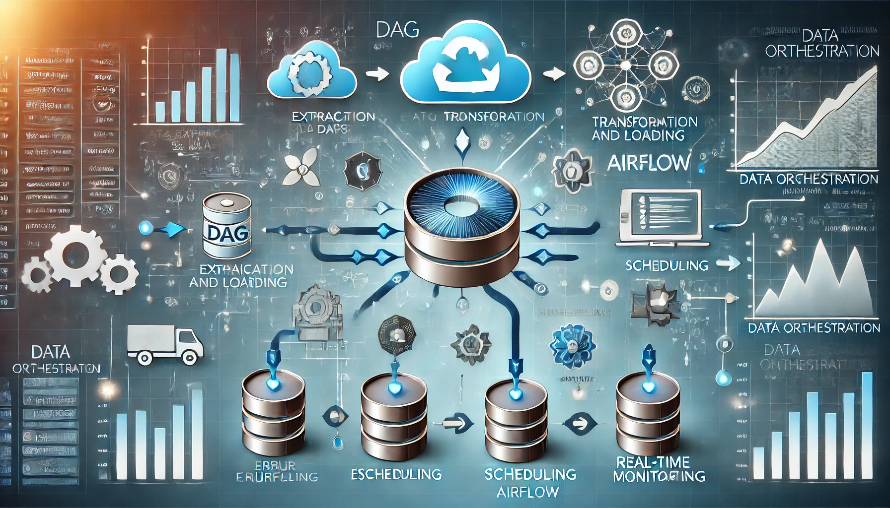 데이터 오케스트레이션은 분산된 데이터 소스 간의 흐름을 통합하고, 복잡한 데이터 작업들을 자동화하여, 적시에 필요한 위치로 데이터를 이동시키는 전사적 데이터 운영 전략이다. 주로 워크플로우 기반으로 설계되며, 다양한 시스템 간의 의존성을 고려한 실행 순서를 제어할 수 있다.