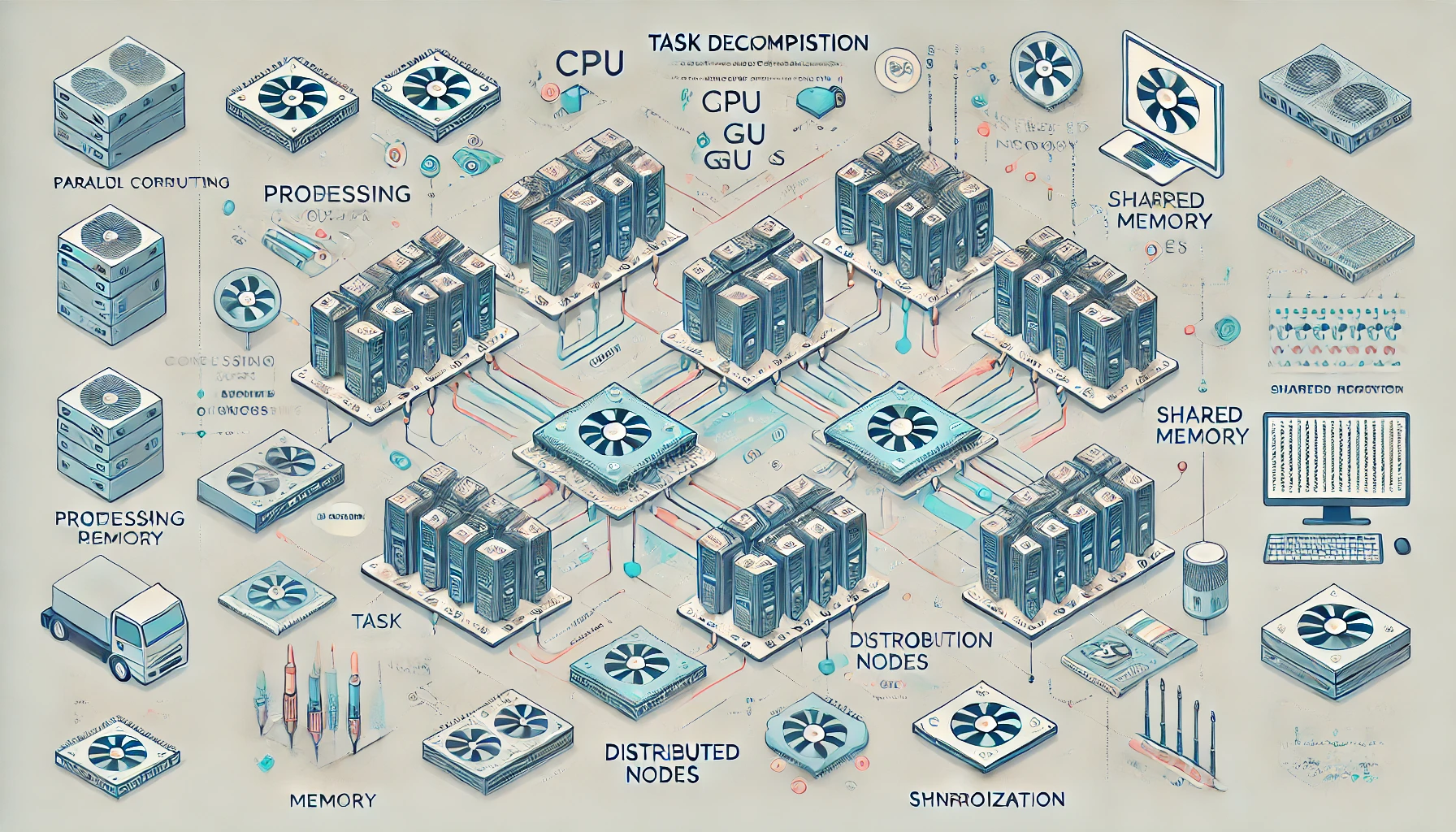병렬처리 컴퓨팅(Parallel Computing)은 대규모 연산 작업을 여러 개의 프로세서 또는 코어에 동시에 분산 처리하여 성능을 향상시키는 컴퓨팅 방식입니다. 과학 기술 계산, 인공지능, 그래픽 렌더링, 시뮬레이션 등 막대한 처리량이 요구되는 분야에서 핵심 기술로 자리 잡고 있으며, CPU와 GPU, 클러스터 및 클라우드 인프라까지 다양한 환경에서 적용되고 있습니다.