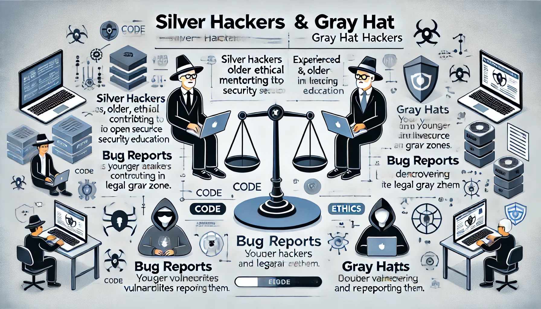 해커는 블랙(악의적), 화이트(윤리적), 그레이(중립적)로 구분되곤 하지만, 최근에는 실버 해커(Silver Hacker)라는 새로운 개념이 함께 등장하고 있습니다. 실버 해커는 고령의 해커 또는 고경력 보안 전문가를 의미하며, 축적된 경험과 기술로 윤리적 보안 활동에 기여하는 반면, 그레이 해커는 법과 윤리의 경계에서 활동하는 해커를 뜻합니다. 이 글에서는 실버 해커와 그레이 해커의 정의, 특징, 활동 영역, 사회적 인식 및 윤리적 쟁점을 정리합니다.