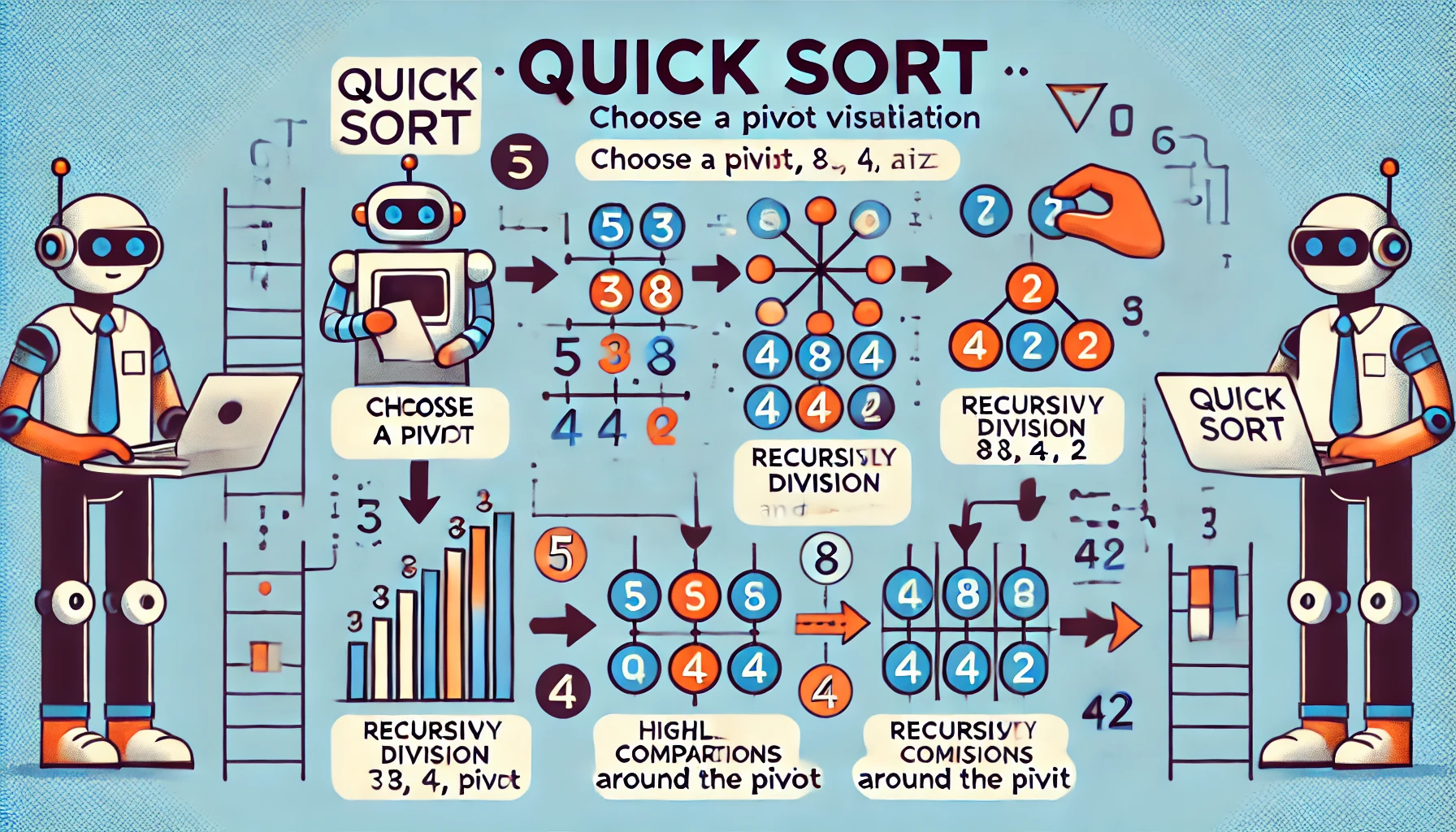 퀵 정렬은 비교 기반 정렬 중 평균 성능이 가장 우수한 정렬 알고리즘이다. 분할 정복 전략을 기반으로 피벗을 활용하여 재귀적으로 배열을 정렬하며, 빠른 속도와 낮은 메모리 사용으로 인해 실무와 이론에서 모두 널리 사용된다. 피벗 선택과 구현 전략만 잘 설계한다면, 정렬 알고리즘 중 가장 실용적이라 할 수 있다.