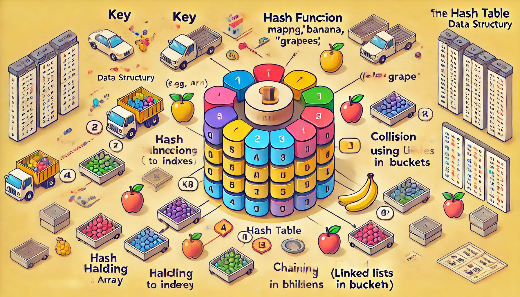 - 충돌(Collision): 서로 다른 키가 같은 인덱스로 해시되는 현상