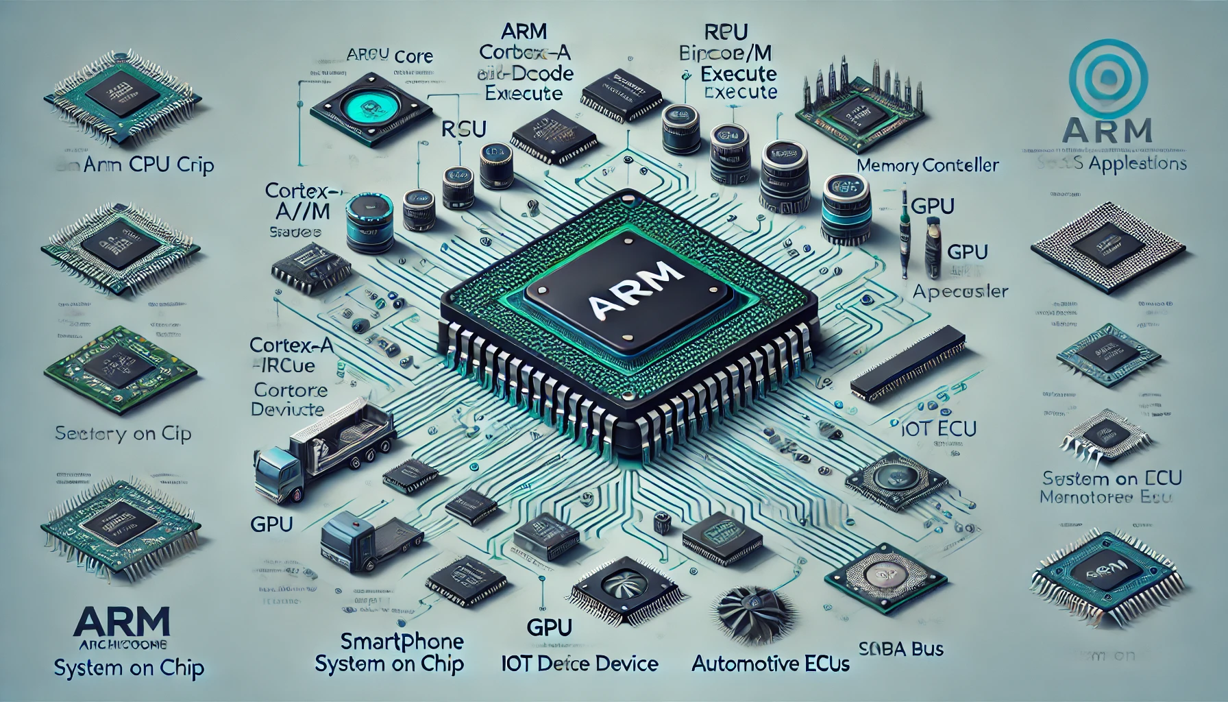 ARM 아키텍처는 영국 ARM Holdings가 설계하고 라이선스를 제공하는 RISC 기반의 32/64비트 마이크로프로세서 아키텍처입니다. 높은 전력 효율성과 컴팩트한 설계로 인해 스마트폰, 태블릿, IoT, 자동차, 서버 등 다양한 분야에서 광범위하게 사용되며, 특히 모바일 및 저전력 시스템의 표준으로 자리잡고 있습니다. 본 글에서는 ARM 아키텍처의 개념, 특징, 구조적 장점, SoC와의 관계, 실무 적용 사례까지 종합적으로 설명합니다.