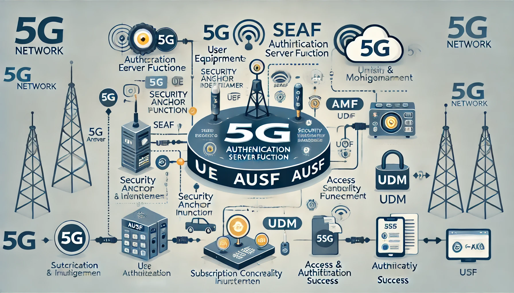 AUSF는 5G Core의 다른 요소들(AMF, SEAF 등)과 긴밀히 상호작용합니다.