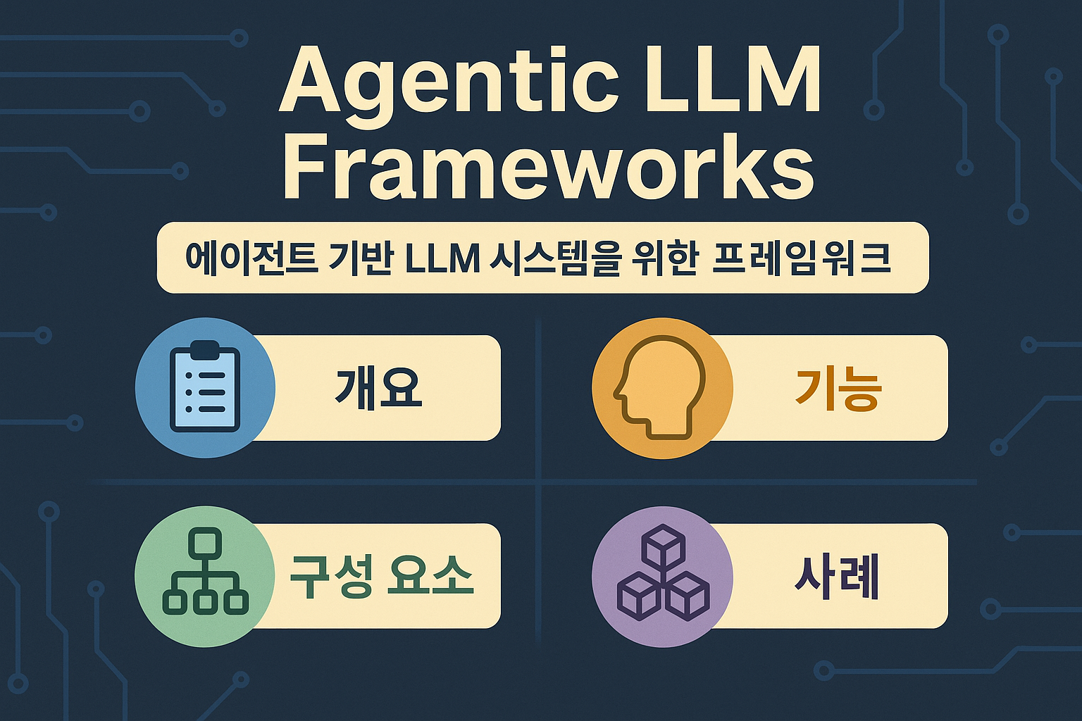 Agentic LLM Frameworks는 LLM(Large Language Model)이 단순 응답 도구를 넘어, 스스로 목표를 설정하고, 계획하며, 실행하는 자율형 에이전트로 진화하기 위한 핵심 인프라입니다. 이 글에서는 대표적인 프레임워크 구조와 기술 요소, 주요 도구와 실무 활용 사례를 상세히 소개합니다.