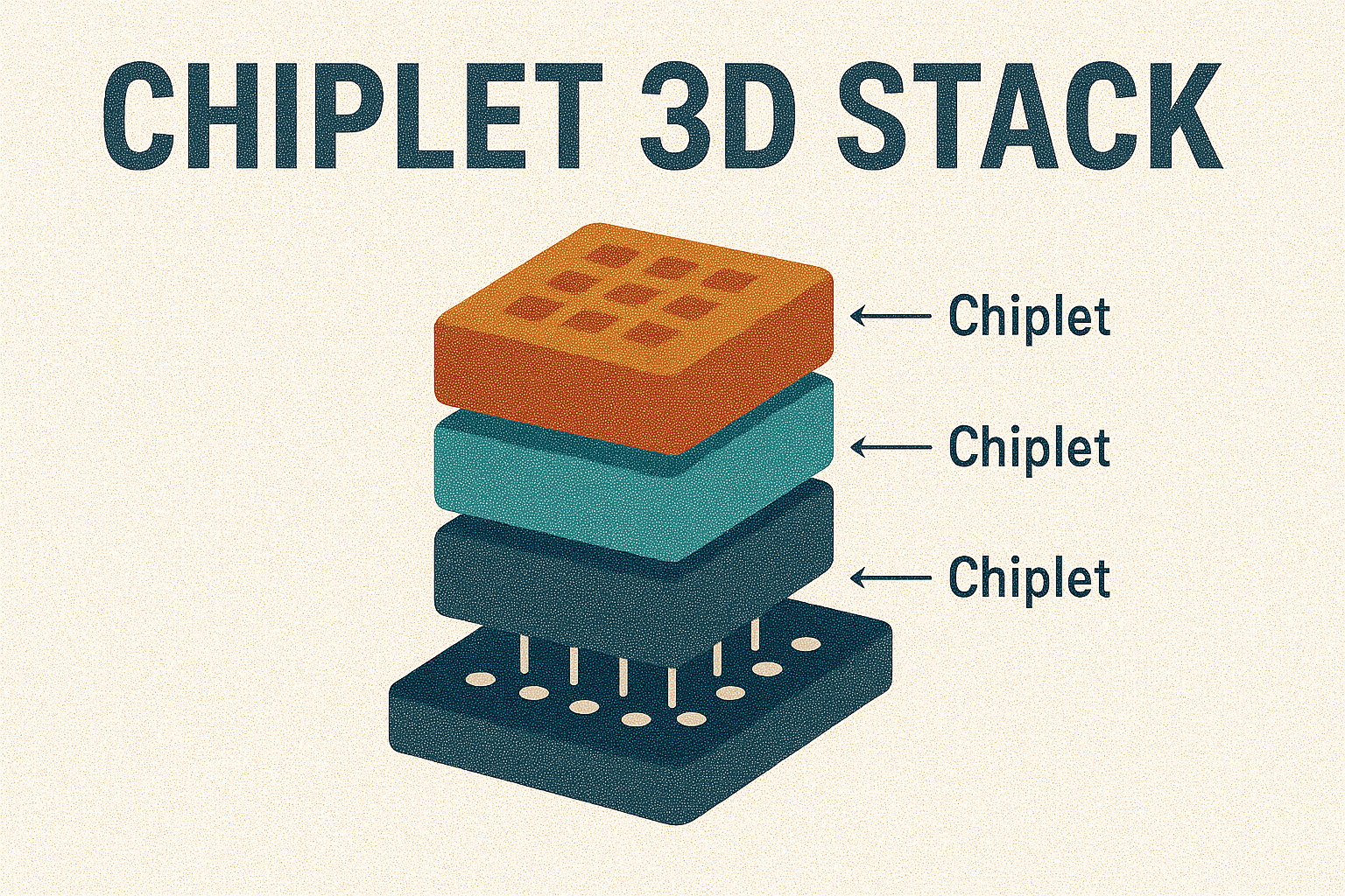 Chiplet 3D Stack은 기능별로 분리된 작은 칩(Chiplet)을 TSV(Through-Silicon Via), Micro-bump, Hybrid Bonding 등으로 연결해 3차원 공간에서 통합하는 기술이다.