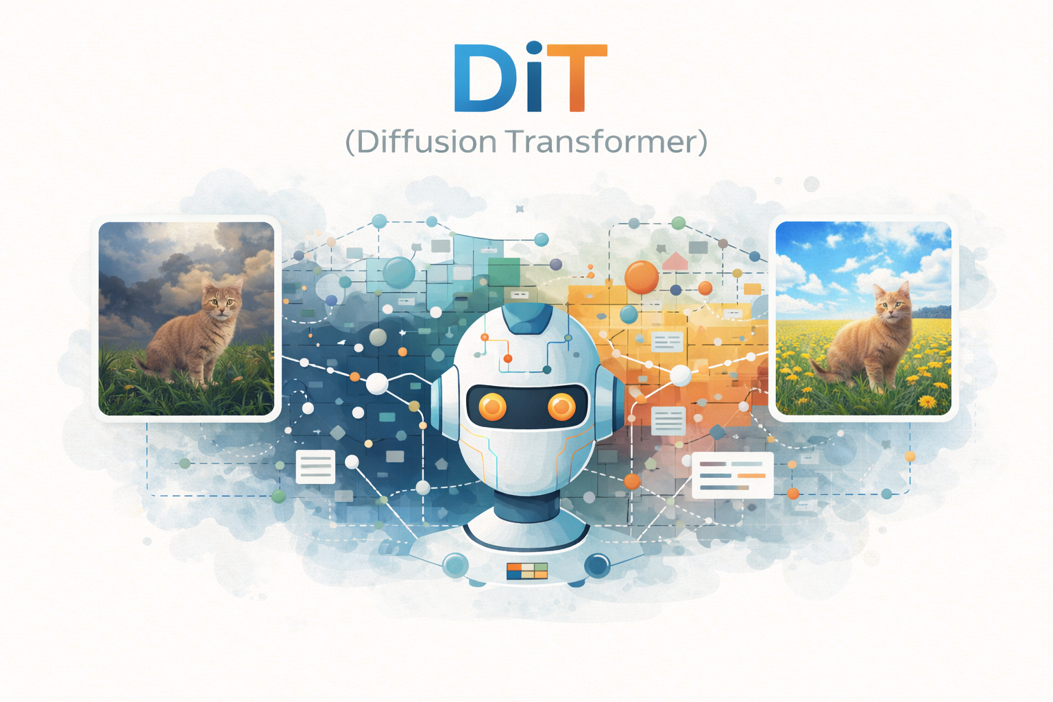DiT는 트랜스포머의 표현력 + 디퓨전의 안정성을 결합한 차세대 생성 모델입니다.