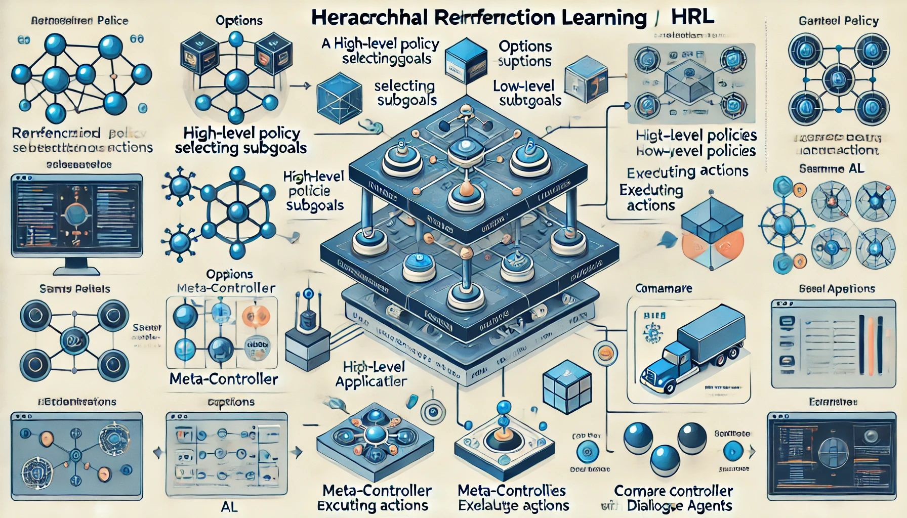 Hierarchical Reinforcement Learning은 복잡한 행동을 단계별로 분해하여 학습하는 강화학습의 고도화 전략으로, 실제 환경에서의 적용성과 해석 가능성 모두를 강화할 수 있는 기술입니다. 향후에는 LLM 기반 목표 생성, 멀티에이전트 HRL, 하이브리드 제어 AI 등과 결합되어 스케일링 가능한 자율 시스템을 구현하는 핵심 기술로 자리 잡을 것입니다.