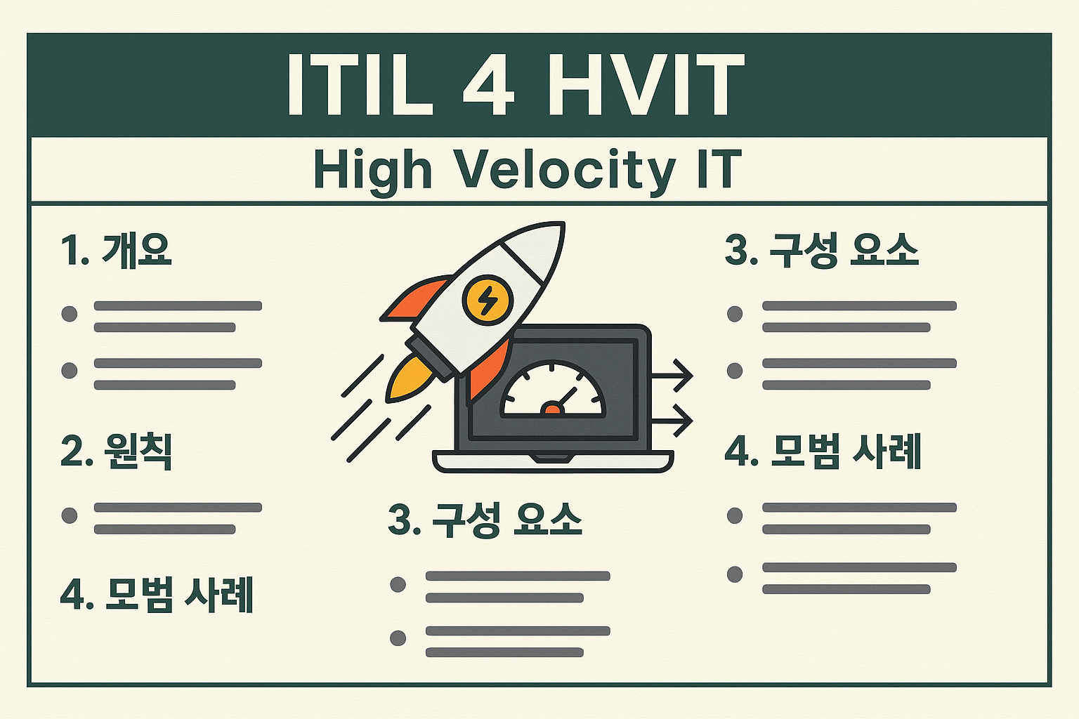 ITIL 4의 High Velocity IT(HVIT)는 디지털 시대의 변화 속도에 맞춰 IT 서비스의 신속한 제공, 반복적 개선, 높은 민첩성과 복원력을 강조하는 관리 실천 체계입니다. HVIT는 DevOps, Agile, Lean, SRE 등의 실천과 융합하여, 가치 중심의 고속 IT 전달을 위한 조직적 역량과 문화 정착을 목적으로 합니다.