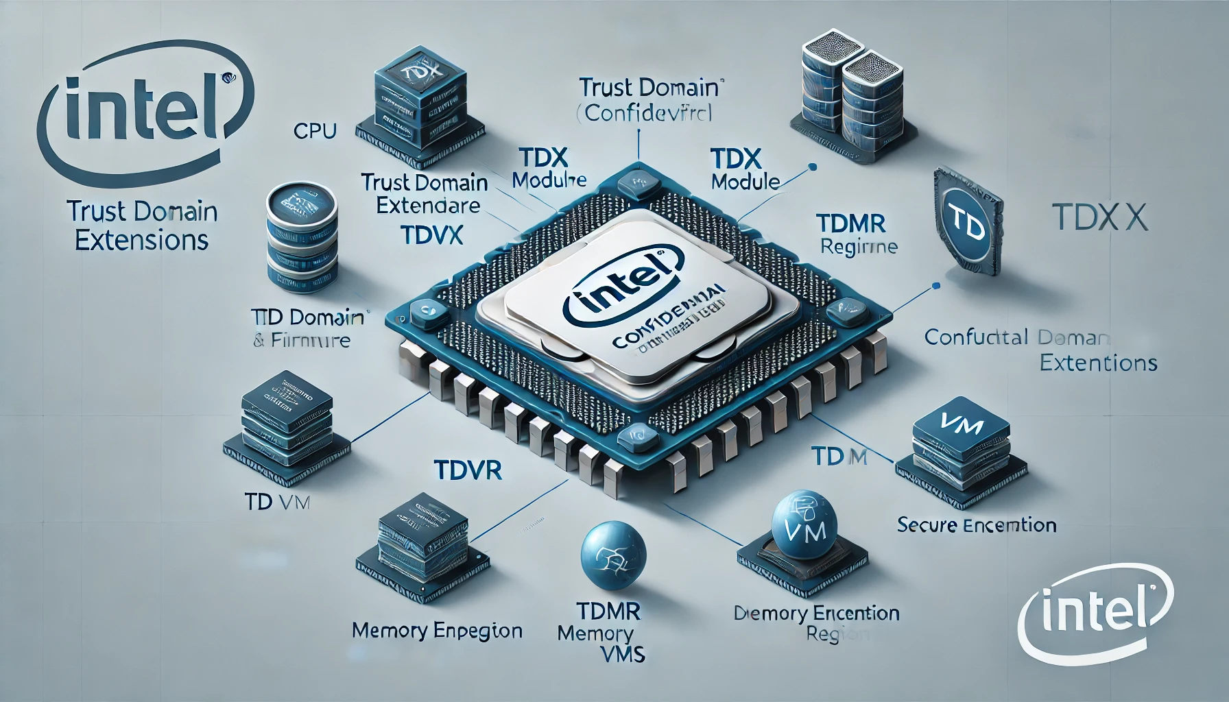 **Intel TDX(Trust Domain Extensions)**는 신뢰 영역(Trust Domain: TD)을 생성하여, 일반적인 VM과는 격리된 메모리·레지스터·I/O 자원 접근을 제한함으로써, 공격 표면을 줄이고 데이터 기밀성을 강화하는 기술입니다.