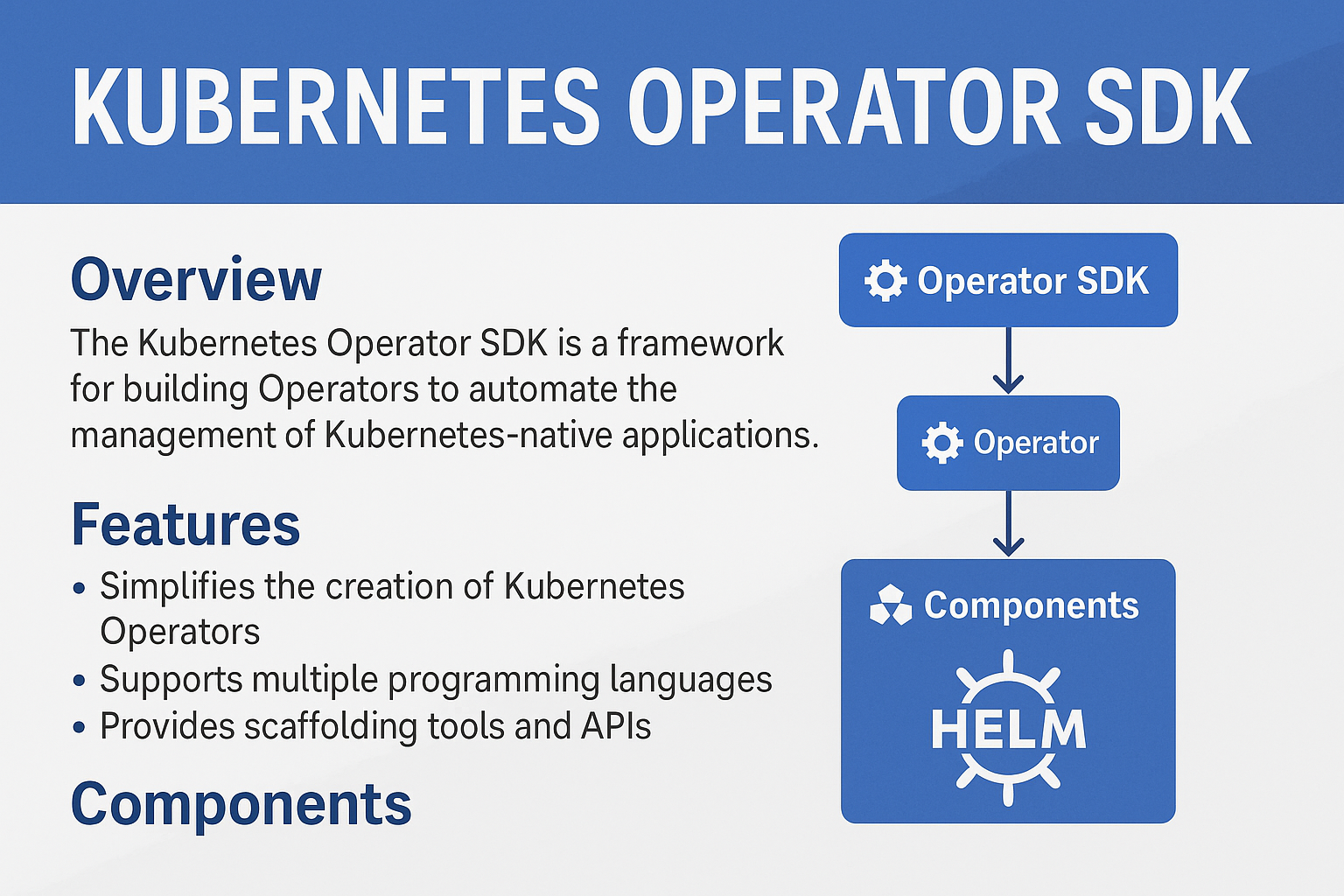 | 정의 | Kubernetes Operator SDK는 사용자 정의 리소스(CR)와 컨트롤러를 손쉽게 개발·관리할 수 있도록 돕는 CLI 기반 개발 프레임워크입니다. |