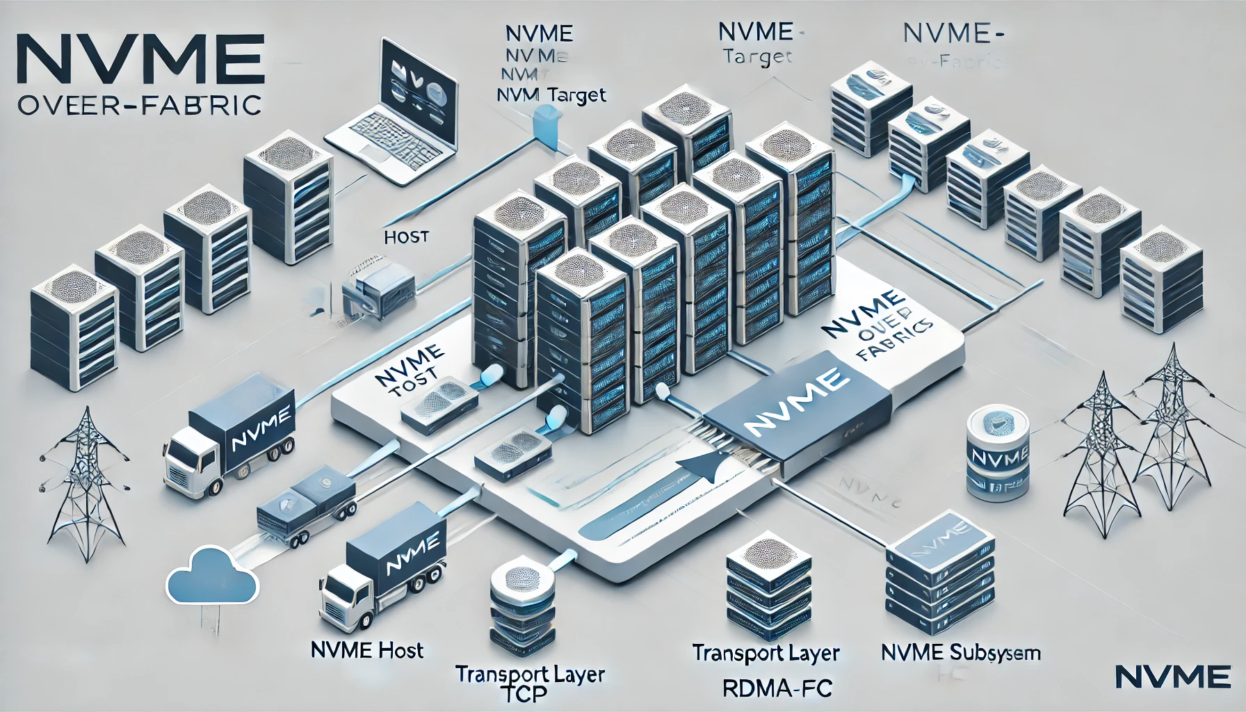 - 전송 방식: TCP, RDMA(RoCE, iWARP), FC-NVMe 등 다양한 패브릭 지원