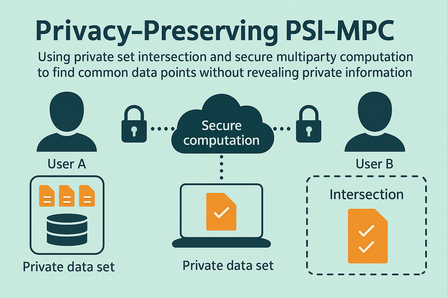 Privacy-Preserving PSI-MPC는 두 개 이상의 데이터 제공자가 서로의 데이터셋을 직접 공개하지 않고, 특정 조건(예: 공통 데이터 항목)만을 안전하게 연산할 수 있도록 하는 기술입니다. PSI는 집합 간의 교집합을 계산하는 기술이고, MPC는 복수 당사자가 입력을 암호화 상태로 유지한 채 연산 결과만 공유할 수 있도록 하는 분산형 암호 기술입니다.