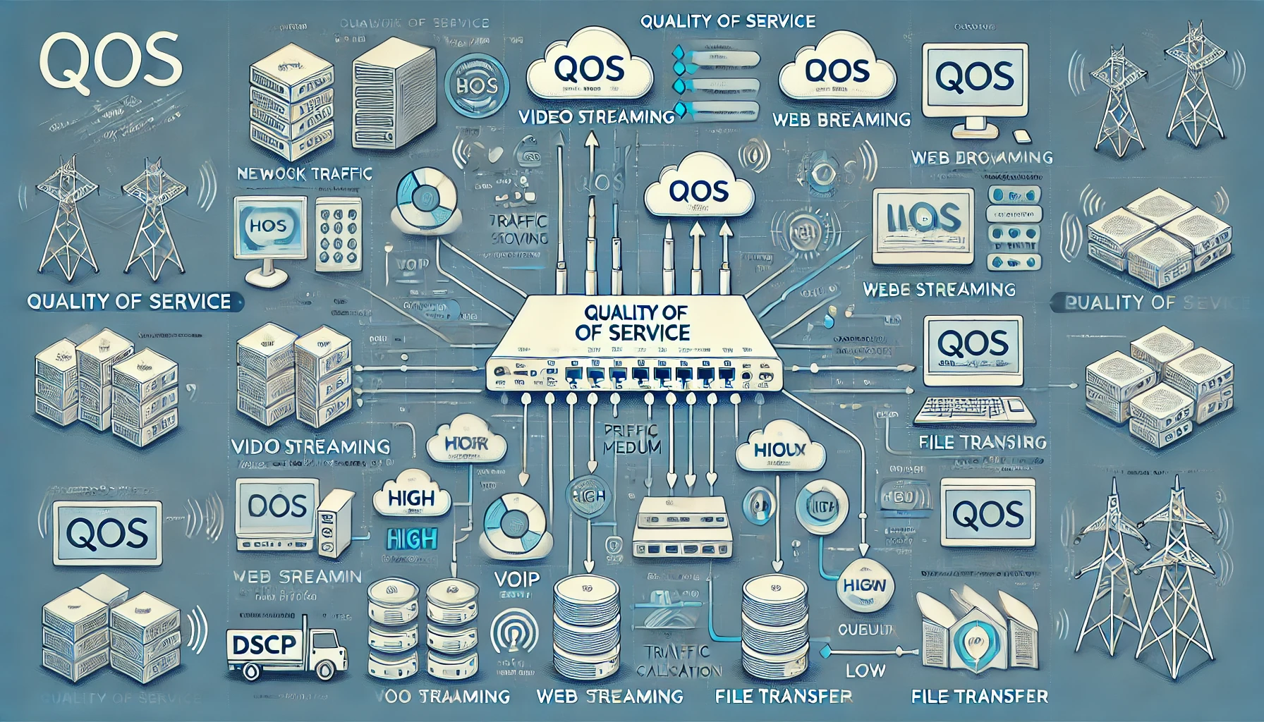 QoS는 네트워크 트래픽을 분류하고 관리함으로써 특정 트래픽의 품질을 보장하고, 전체 네트워크 자원의 효율적인 활용을 가능하게 하는 메커니즘입니다. 기본적으로 네트워크 장비(라우터, 스위치 등)는 패킷을 모두 동일하게 처리하지만, QoS를 통해 서비스 중요도에 따라 트래픽에 우선순위를 부여하고, 대역폭을 할당하거나 지연을 최소화할 수 있습니다.