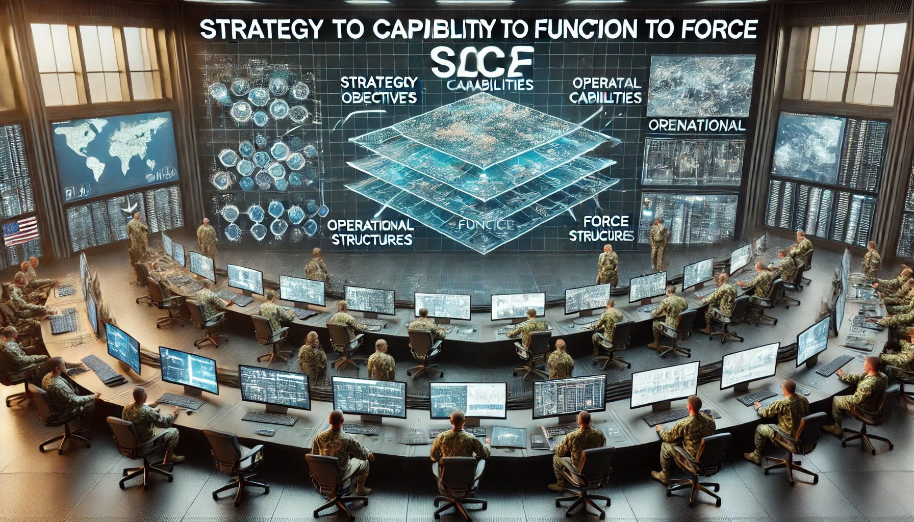 S2C2F는 Strategy to Capability to Function to Force의 약어로, 전략적 목표(Strategy)부터 전력구성(Force)까지의 논리적 연결 구조를 통해 국방, 안보, 대규모 조직 등에서 실행력 있는 역량 기반 계획을 수립하는 프레임워크입니다. 이 체계는 정책 결정자들이 전략 수립부터 구체적 기능과 자산 배치까지 일관성 있게 연계할 수 있도록 도와주며, 특히 국방기획, 국가안보, 대규모 복합조직의 역량 정렬에 활용됩니다.