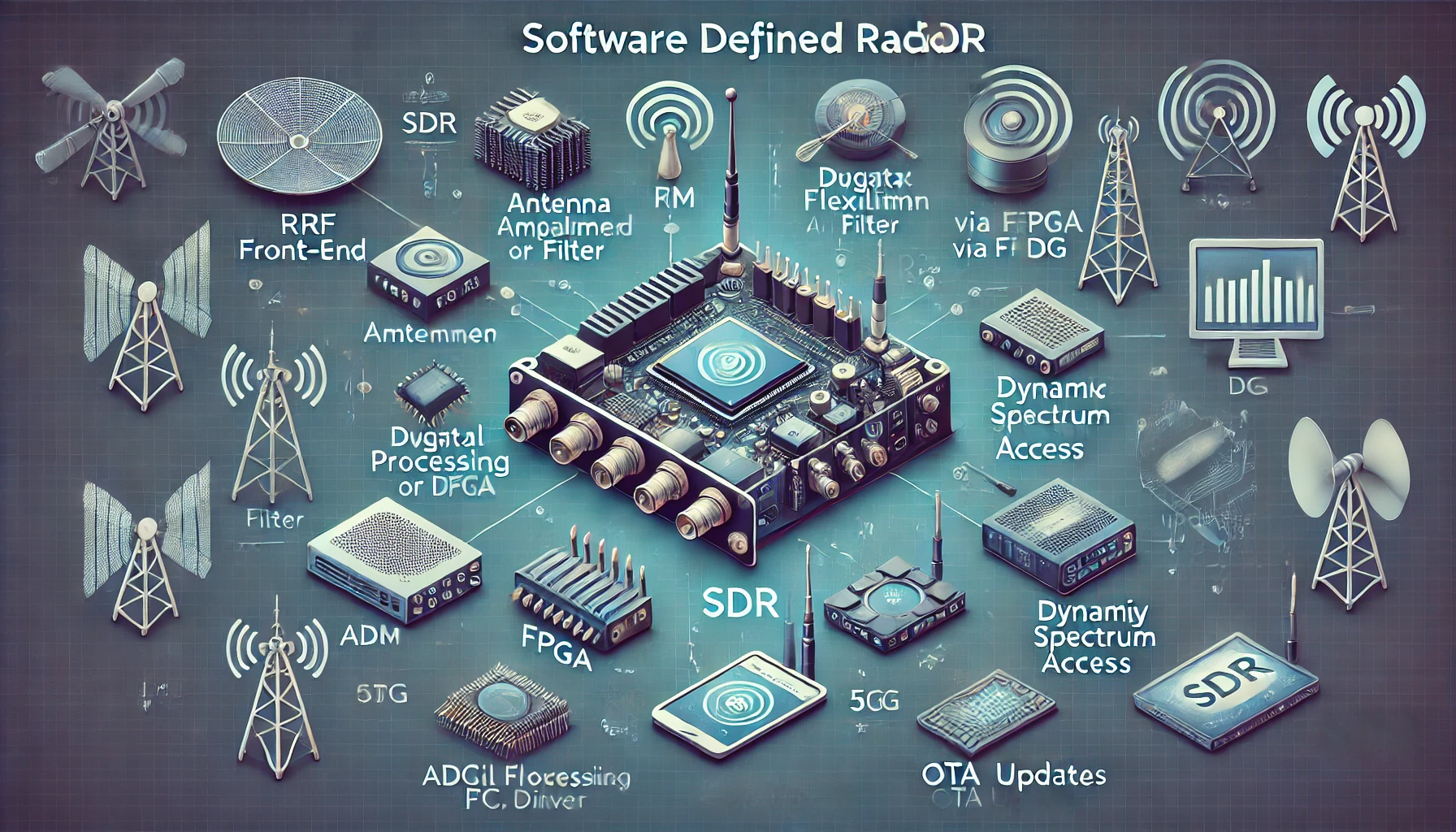 하나의 하드웨어 플랫폼에서 여러 통신 방식(AM/FM, LTE, 5G, 위성 통신 등)을 실행할 수 있어, 민간/군용 통신, IoT, 위성 시스템 등 다양한 분야에서 주목받고 있습니다.