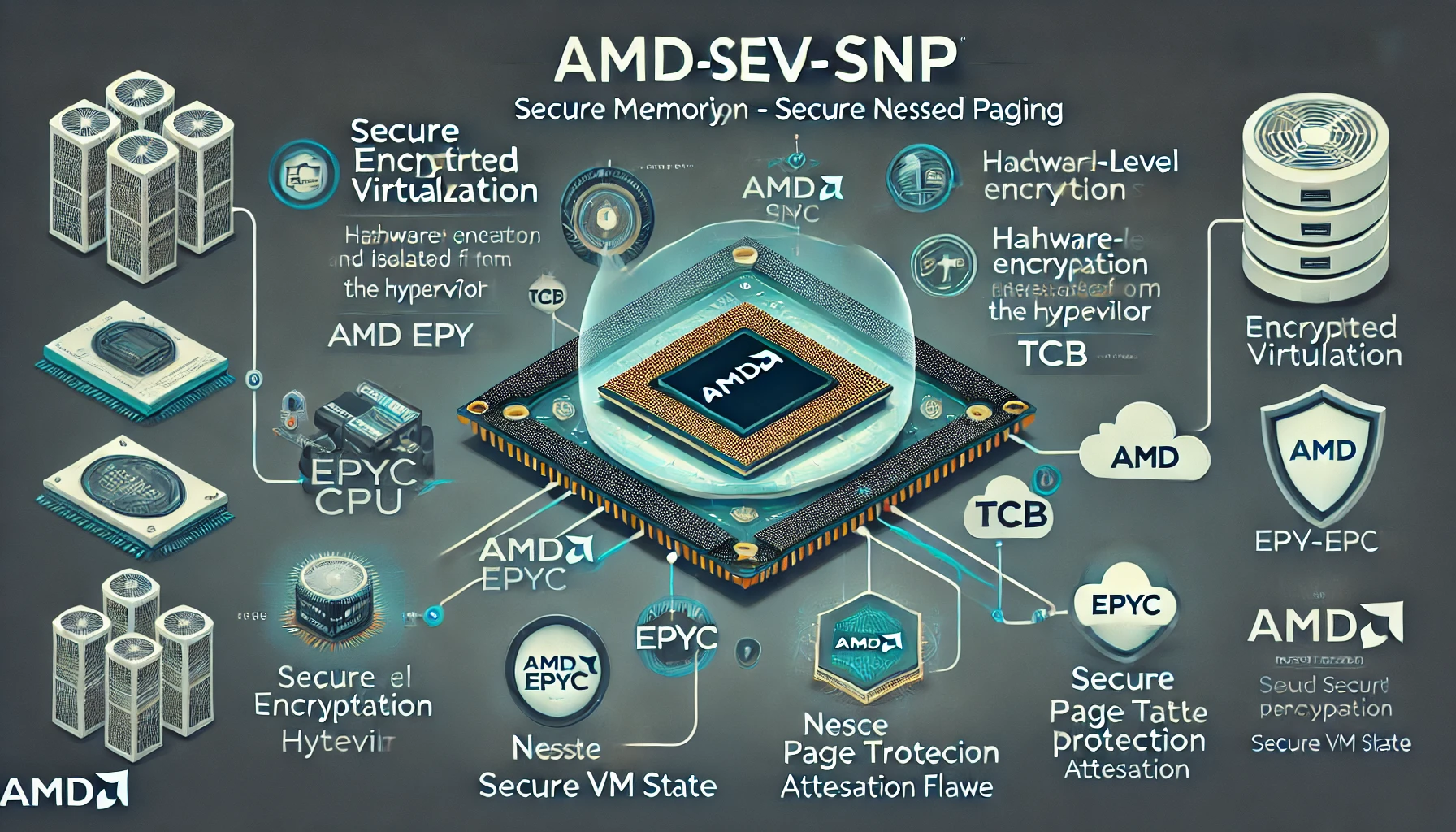 SEV-SNP(Secure Encrypted Virtualization – Secure Nested Paging)는 AMD가 개발한 차세대 하드웨어 기반 메모리 암호화 및 무결성 보호 기술입니다. SEV 시리즈의 최신 기술로, 클라우드 및 멀티테넌트 환경에서 운영체제, 하이퍼바이저, 펌웨어까지 신뢰할 수 없는 위협 모델에서도 가상 머신(VM)의 기밀성과 무결성을 강력하게 보장합니다.