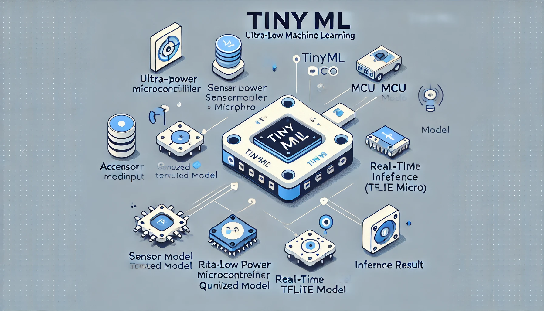 **TinyML(Tiny Machine Learning)**은 1mW 이하의 전력에서 동작하는 소형 디바이스에 최적화된 머신러닝 모델과 실행 환경을 의미합니다. 주요 목표는 에너지 효율성과 응답 속도 확보이며, 이를 위해 모델 경량화, 최적화된 런타임, 하드웨어 가속 등이 함께 고려됩니다.