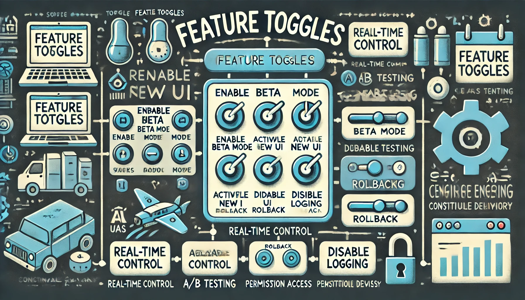Toggles(토글)는 소프트웨어 시스템에서 기능을 켜고 끄는 방식으로 런타임 동작을 유연하게 제어하는 기법입니다. 이는 Feature Flags와 유사하거나 동일한 개념으로 활용되며, 배포와 릴리즈를 분리하거나 특정 사용자 그룹을 대상으로 기능을 점진적으로 테스트할 수 있게 해주는 중요한 DevOps 및 Continuous Delivery 전략입니다. 토글은 단순한 조건문을 넘어, 운영 중인 애플리케이션의 행동을 실시간으로 조정할 수 있는 강력한 도구입니다.