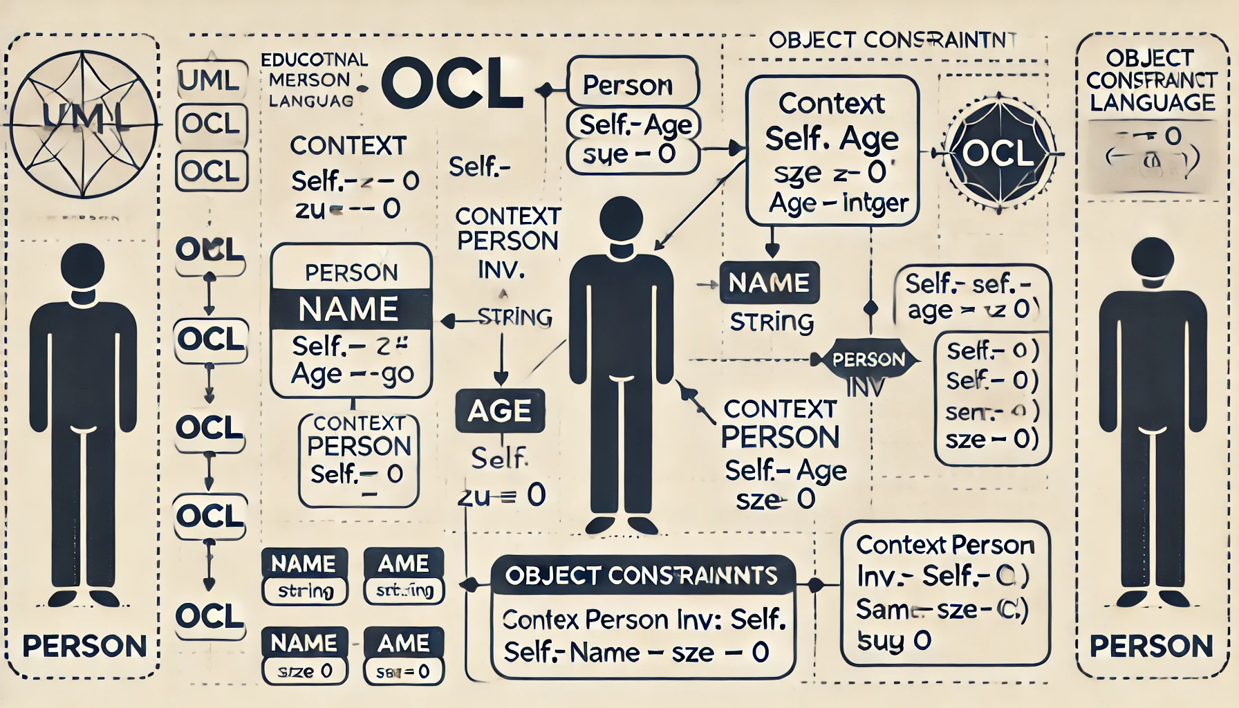 OCL(Object Constraint Language)은 UML(Unified Modeling Language)의 확장 언어로, 모델 요소에 대한 정형화된 제약 조건을 명시하기 위해 사용되는 선언형 모델링 언어입니다. 자연어보다 명확하며, 프로그래밍 언어보다 단순한 문법을 갖춘 OCL은 클래스 다이어그램의 속성, 연관관계, 불변식, 선행 조건, 후행 조건 등을 정확하게 정의할 수 있도록 지원합니다.