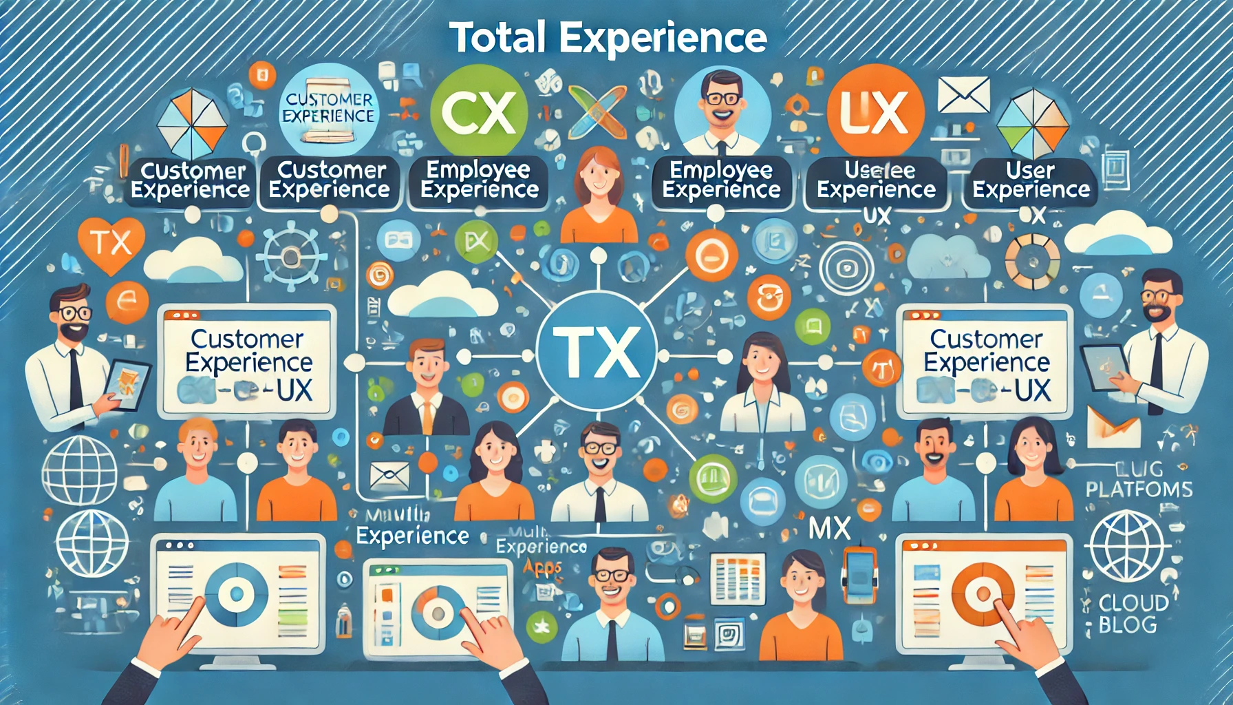 Total Experience는 다양한 이해관계자(고객, 직원, 사용자)의 경험을 연계된 방식으로 설계하고 운영하여 기업 전체의 경쟁력을 강화하는 경험 중심의 전략이다.