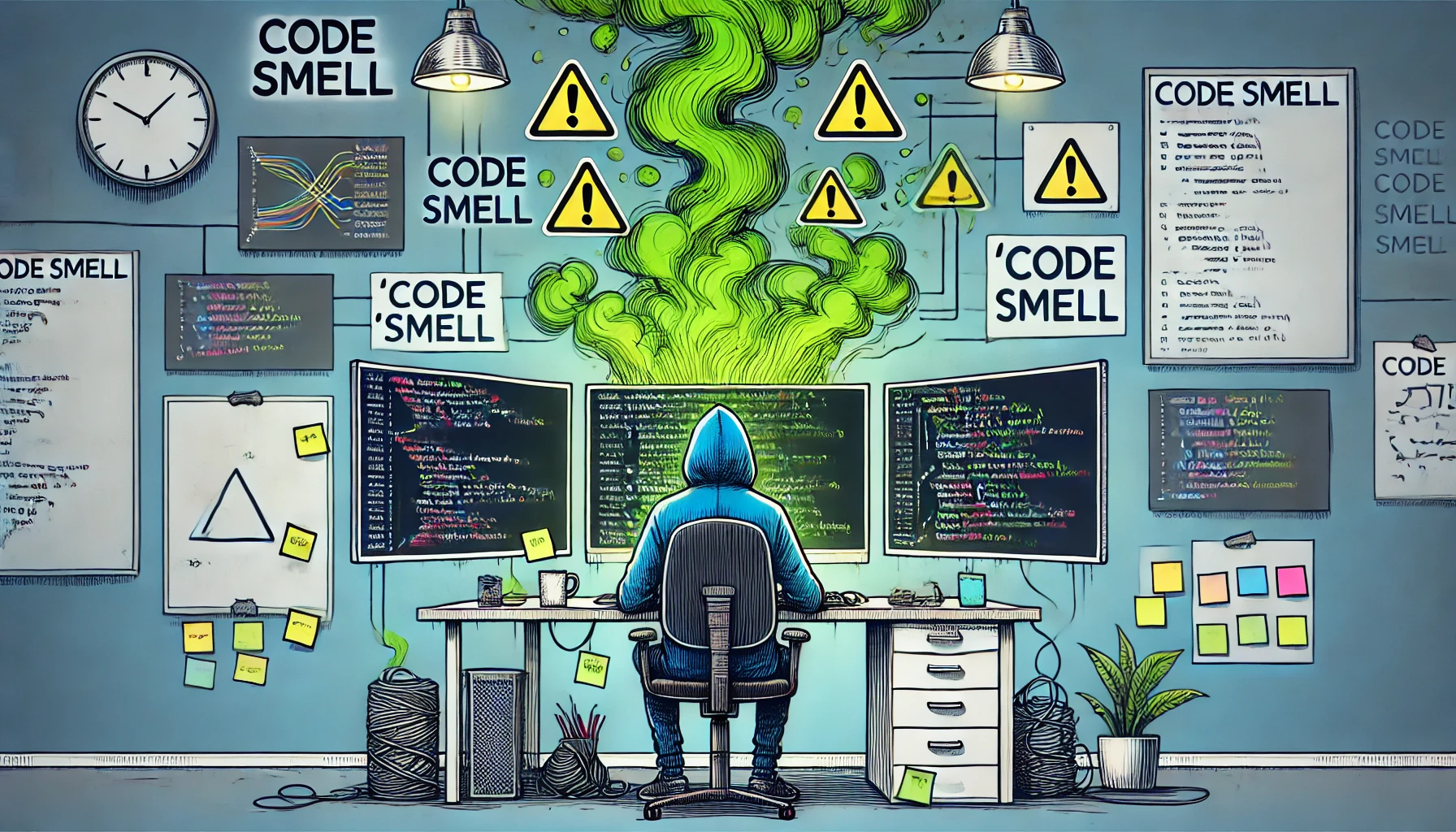 코드스멜(Code Smell)은 1990년대 말 켄트 벡(Kent Beck)과 마틴 파울러(Martin Fowler)에 의해 정의된 개념으로, 코드를 처음 봤을 때 직관적으로 "뭔가 잘못되었다"고 느껴지는 부분을 의미합니다. 이는 프로그램이 정확히 동작하더라도 내부 구조가 비효율적이거나, 가독성 및 유지보수성이 떨어지는 상황을 말합니다.