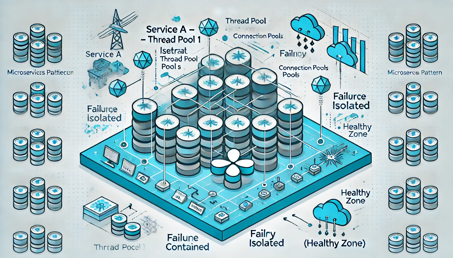 - 목적: 하나의 서비스, 스레드 풀, 연결 풀에 오류가 발생해도 나머지 기능 보호
