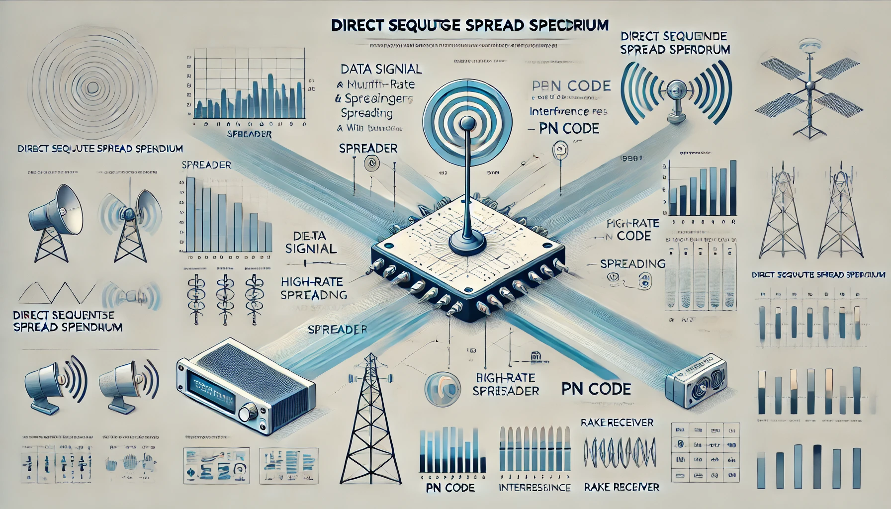 DSSS(Direct Sequence Spread Spectrum, 직렬 확산 스펙트럼)는 전송하려는 원래의 데이터 신호에 고속의 확산 코드(Spreading Code)를 곱하여 넓은 주파수 대역에 걸쳐 신호를 분산시키는 무선 통신 방식이다. 간섭 및 잡음에 강하고, 보안성이 뛰어난 특징으로 인해 CDMA, GPS, 군 통신, Wi-Fi(802.11b) 등 다양한 무선 통신 시스템에 활용된다. 이 글에서는 DSSS의 원리, 구성 요소, 장단점 및 활용 사례를 중심으로 기술적 이해를 돕는다.
