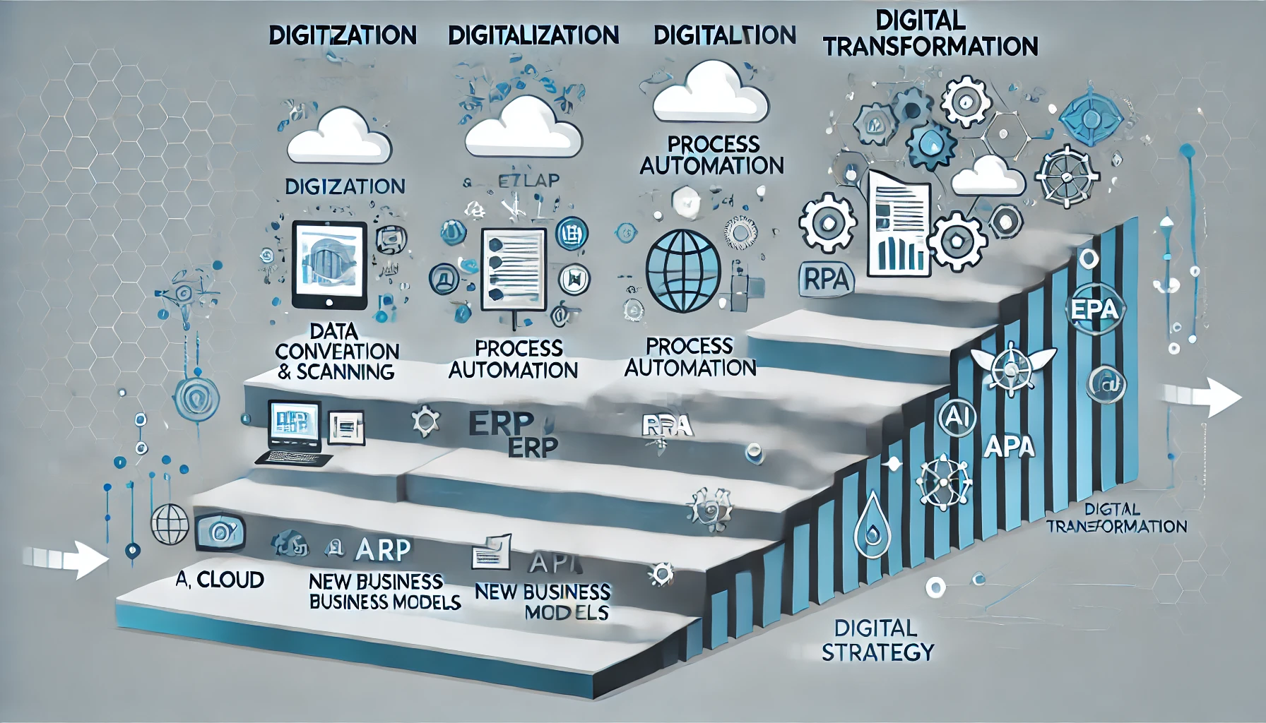 디지털 전환(Digital Transformation)은 한 순간에 완성되는 것이 아니라, Digitization → Digitalization → Digital Transformation의 3단계를 거쳐 점진적으로 진화하는 경로입니다. 많은 기업들이 단순 디지털화에 머무르거나, 디지털화를 넘어서지 못하는 이유는 이 단계적 흐름에 대한 명확한 이해 부족 때문입니다. 본 글에서는 각 단계의 개념, 차이점, 구성 요소, 기술 적용, 실제 사례를 중심으로 체계적인 DT 전략 설계 방법을 제시합니다.