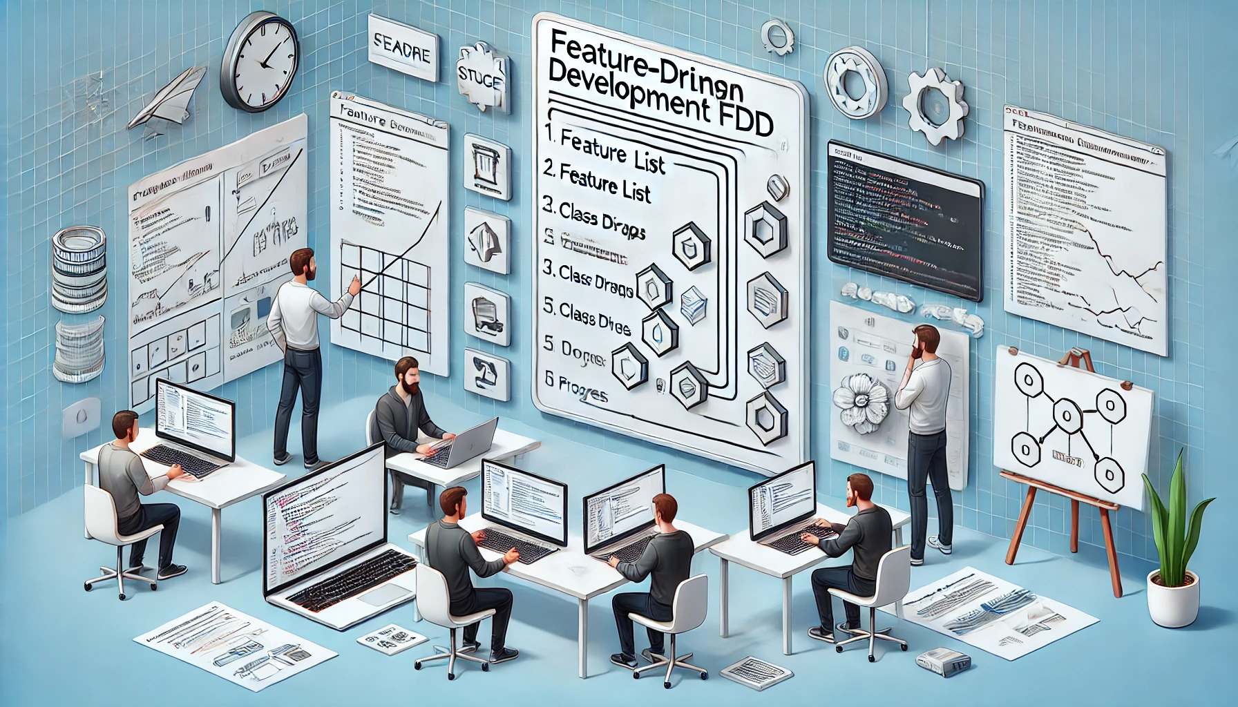 FDD는 1997년 제프 디루카(Jeff De Luca)와 피터 코드(Peter Coad)가 제안한 프로세스 중심의 애자일 방법론으로, 기능 단위로 개발을 설계하고 관리하는 것을 핵심으로 합니다. '기능'은 고객 관점에서의 유의미한 동작 단위를 의미하며, 설계-구현-빌드까지 일관된 흐름을 제공합니다.