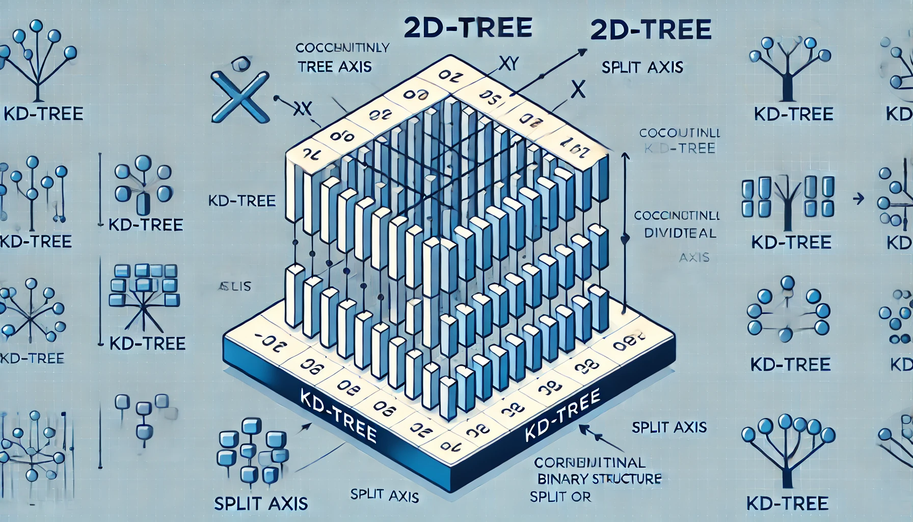 KD-Tree(K-Dimensional Tree)는 다차원(K차원) 데이터에서 효율적인 검색을 가능하게 하는 공간 분할 기반의 이진 탐색 트리입니다. 특히 2D/3D 공간 탐색, 최근접 이웃 검색(Nearest Neighbor Search), 범위 질의(Range Query) 등에 최적화되어 있어 컴퓨터 그래픽스, 머신러닝, 로보틱스 등에서 널리 활용됩니다.