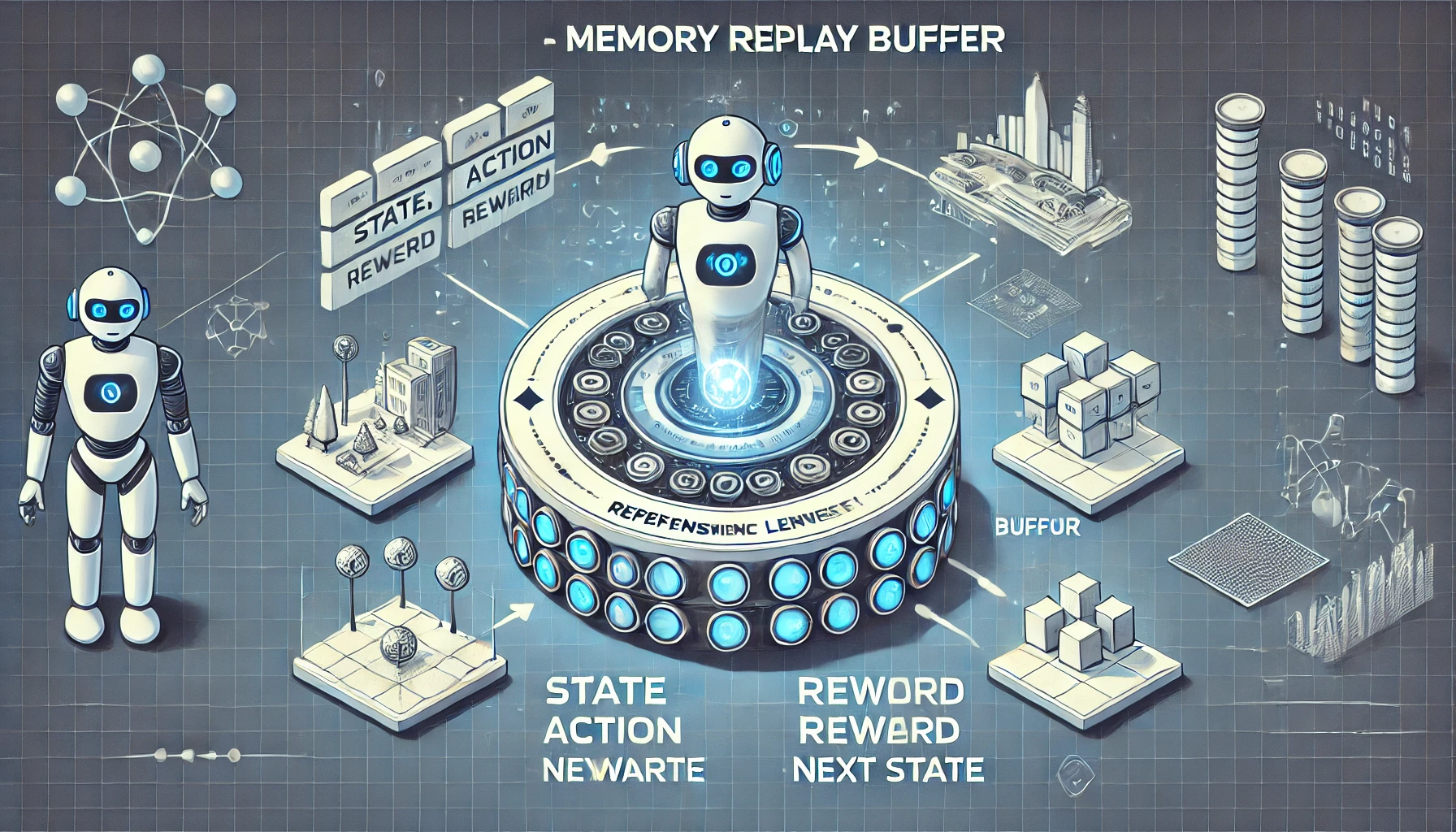 Memory Replay Buffer(메모리 리플레이 버퍼)는 강화 학습(Reinforcement Learning, RL)에서 에이전트가 수집한 과거 경험을 저장하고, 이를 반복적으로 학습에 활용하기 위해 사용하는 핵심 구조입니다. 비효율적인 학습을 방지하고, 데이터의 다양성을 확보하여 더 안정적이고 효율적인 정책 학습을 가능하게 만듭니다.
