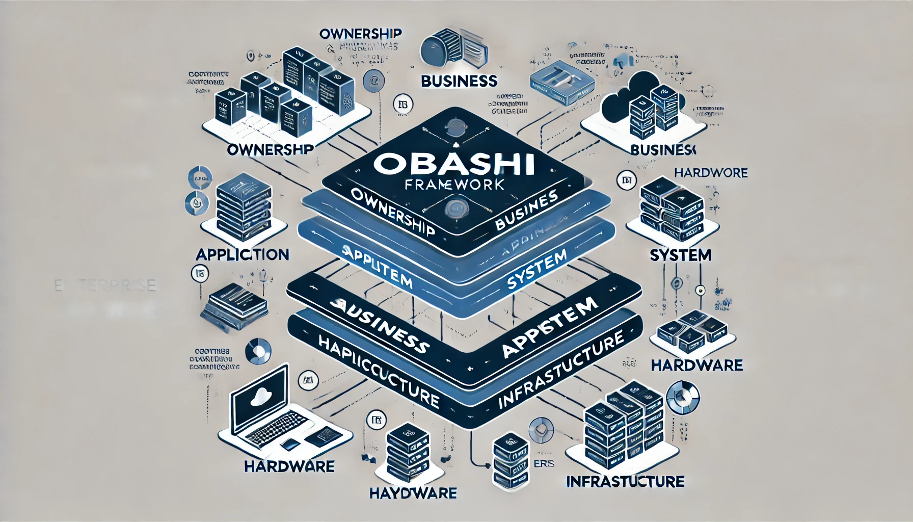 OBASHI 프레임워크는 기업의 비즈니스 프로세스와 IT 자산 간의 관계를 시각적으로 표현하고 분석할 수 있게 하는 정보 흐름 기반 모델링 기법입니다. 이 프레임워크는 Ownership, Business, Application, System, Hardware, Infrastructure의 6단계 레이어로 구성되어, 비즈니스와 기술 간의 상호 의존 관계를 명확히 파악하고 IT 투자, 위험 관리, 디지털 트랜스포메이션 전략 수립 등에 활용됩니다.