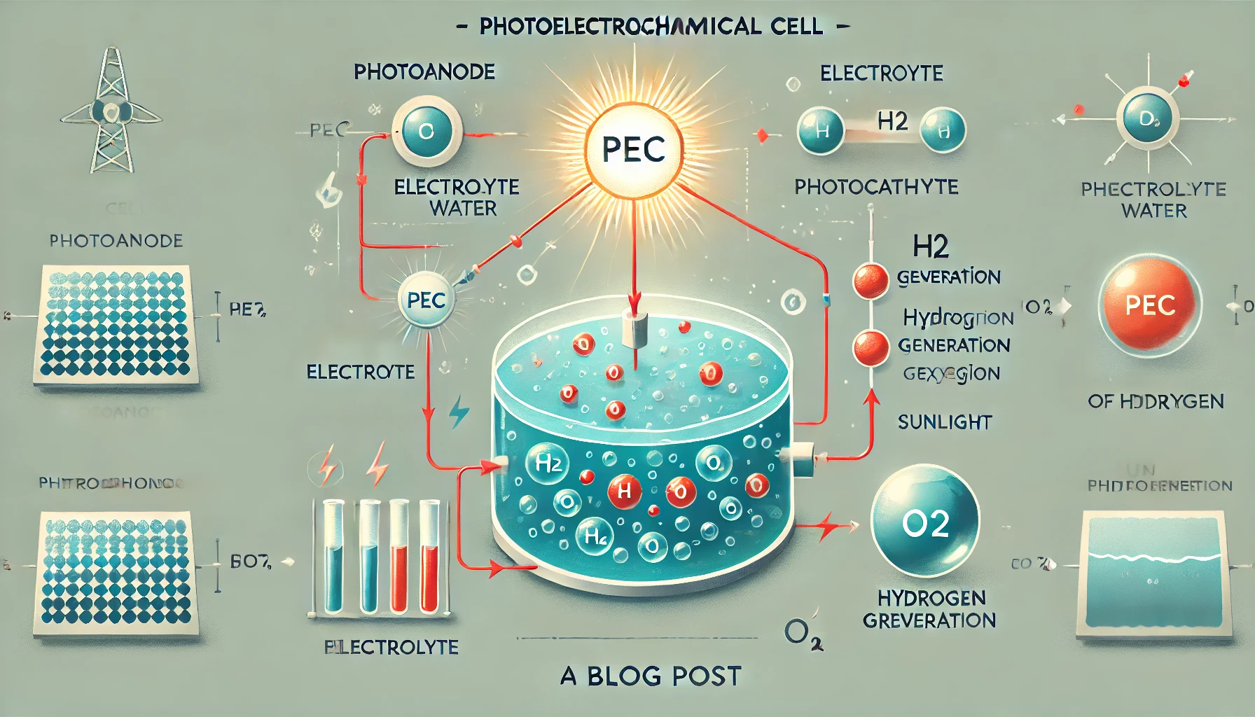 PEC 시스템은 일반적으로 **광양극(photoanode), 광음극(photocathode), 전해질(electrolyte)**로 구성됩니다.