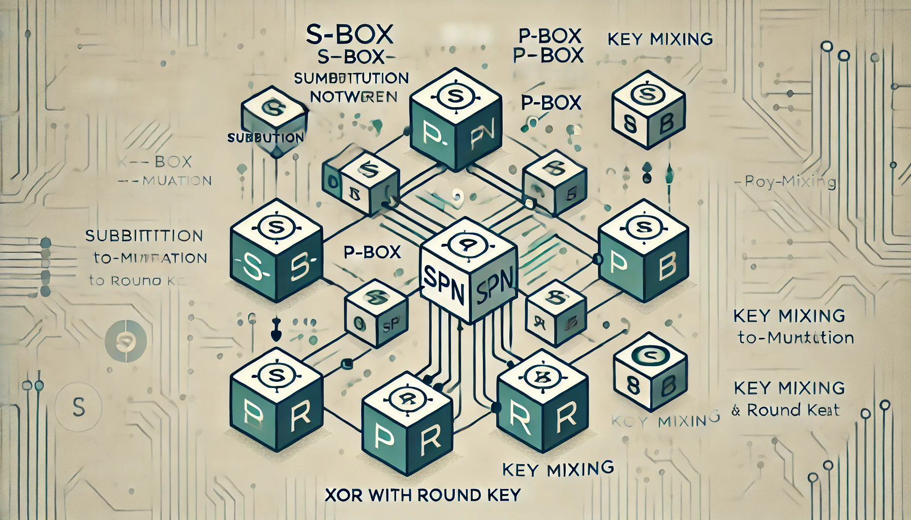 SPN은 치환(Substitution)과 순열(Permutation)을 반복적으로 적용하여 평문을 암호문으로 변환하는 구조입니다. Claude Shannon이 제안한 혼돈(confusion)과 확산(diffusion) 원칙을 실현하는 데 효과적인 방식으로, 각 라운드를 통해 데이터의 보안성을 높입니다.