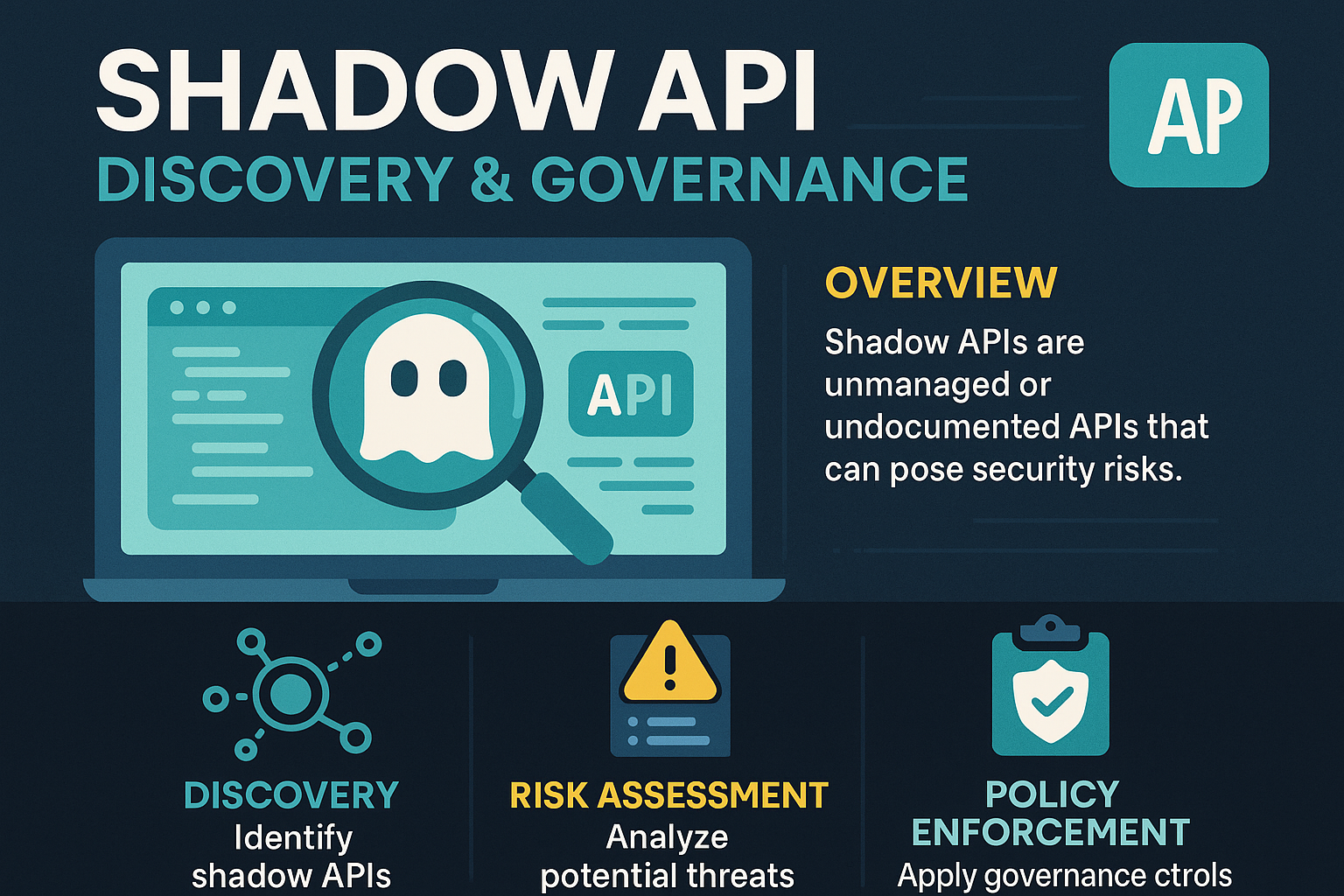 Shadow API란 공식적으로 문서화되거나 관리되지 않은 API 엔드포인트 또는 서비스로, 개발자 또는 제3자가 생성했지만 보안팀 또는 IT 운영팀이 인지하지 못한 상태에서 운영되는 API를 말합니다. Shadow API Discovery는 네트워크 트래픽 분석, 로그 인스펙션, 머신러닝 기반 이상 탐지를 통해 이러한 API를 탐지하고, Governance는 이를 정책 기반으로 통제, 모니터링, 폐기, 등록 관리하는 일련의 관리 체계를 의미합니다.