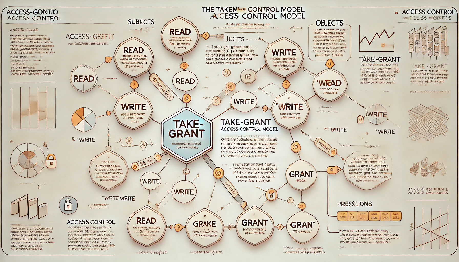 Take-Grant 모델은 컴퓨터 보안에서 권한의 생성, 이전, 위임을 수학적으로 모델링한 그래프 기반의 접근 제어 모델입니다. 특히 시스템 내 객체 간의 **권한 흐름(Authorization Flow)**을 시각화하고, 권한이 어떻게 확산될 수 있는지를 정형적으로 분석할 수 있도록 설계되었습니다. 이는 보안 정책의 설계, 검증 및 분석에 활용됩니다.
